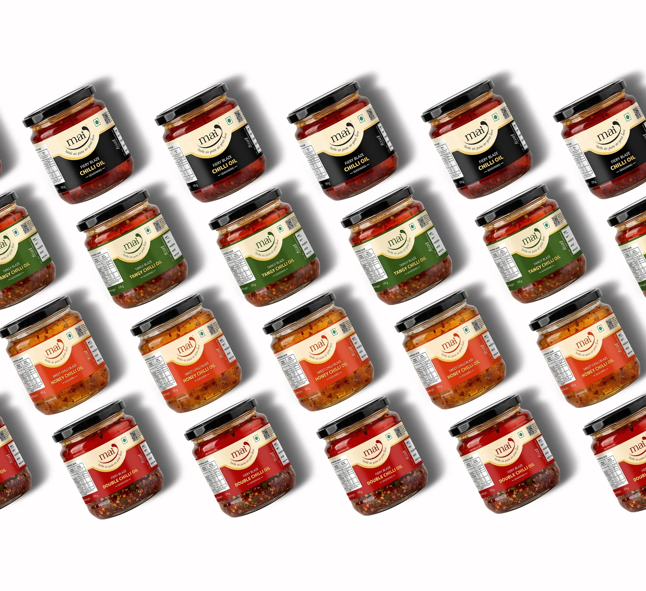 The use of a glass jar format plays a critical role in elevating the product positioning. Transparent packaging allows the vibrant texture and oil-chilli mix to become part of the visual identity, enhancing trust and perceived quality. Glass also subtly signals premium, artisanal, and preservative-free qualities, which are increasingly valued in modern food branding.